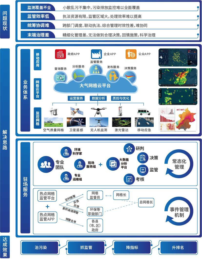 綜合監(jiān)測、分析和科學有效管控全市整體空氣質量狀況,實現(xiàn)精準溯源治理、科學研判空氣質量、動態(tài)調度管控措施、合理降頻削峰。