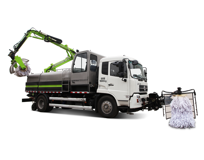 實(shí)現(xiàn)高壓沖洗+毛刷滾刷的清潔效果,完成立式墻面和護(hù)欄等的清洗。